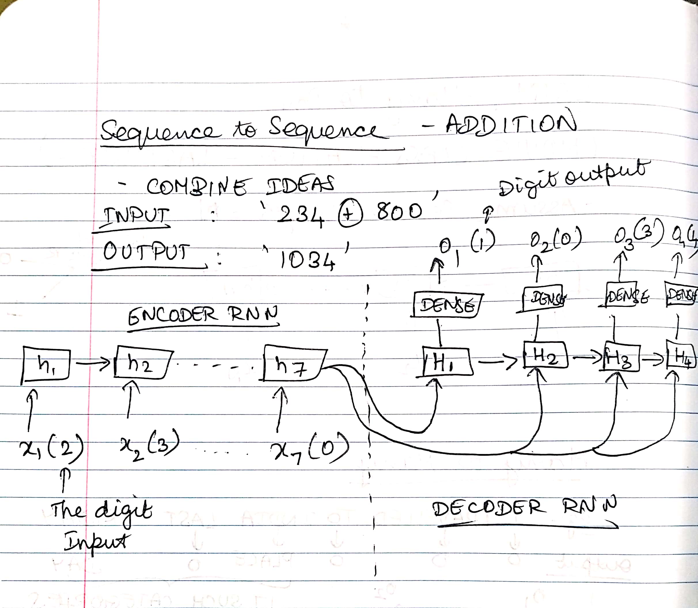 The exercise we attempt to do effectively "translates" a sequence of characters '231+432' to another sequence of characters ' 663' and hence, this class of models are called sequence-to-sequence models (aka seq2seq). Such architectures have profound applications in several real-life tasks such as machine translation, summarization, image captioning etc.